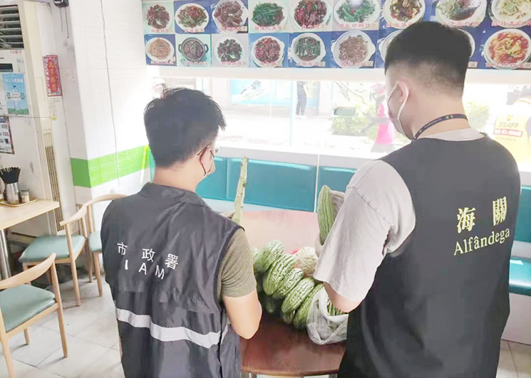 另外,本月十三至十五日,海關聯同市政署於分別位於馬六甲街及氹仔柯維納馬路兩間食店巡查,合共緝獲二十五公未經檢疫食材約。該兩店負責人涉違反《食品安全法》被市政署起訴。