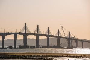 資料顯示,金門大橋工程跨越金門港道連接烈嶼鄉(小金門)與大金門,長約5.4公里,其中跨海橋樑長約4.8公里,主橋最大跨徑為200米。