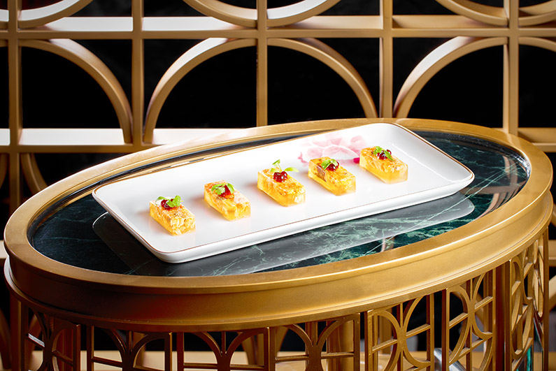 融合昔日情懷與潮流創意,充滿設計巧思的茶樓嚴選優質江蘇大閘蟹,在午市時段為賓客烹調創意蟹粉菜式。特別推介去年廣獲好評的迷你大閘蟹肉金瓜盅 ,採用大量雞、鴨及豬骨熬製八小時而成的高湯,放入新鮮大閘蟹肉和南瓜蓉慢火煮成羹,再放入小南瓜內燉煮,嫩滑蟹肉與香甜南瓜搭配得天衣無縫。更多大閘蟹菜式包括:羊肚菌竹笙蟹粉煲仔蒸飯、紫蘇清蒸大閘蟹、賽螃蟹燴手工蟹粉、烏魚籽蟹粉扒有機蔬菜,以及生拆大閘蟹鮮肉水餃,每道菜式由澳門幣98元起。