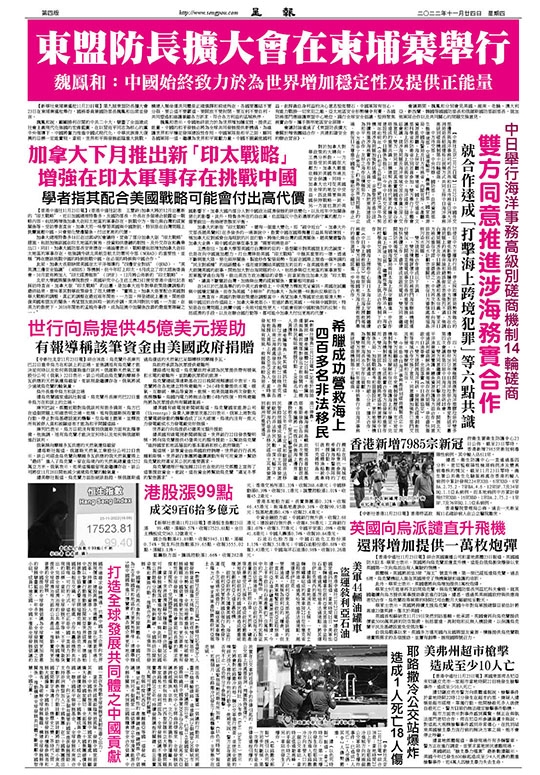 【中新社北京11月23日電】綜合消息:烏克蘭外長庫列巴22日重申烏方在和談上的立場,並強調祗有烏克蘭才能決定何時以及如何與俄羅斯進行談判。俄羅斯天然氣工業股份公司(俄氣)22日表示,該公司經由烏克蘭向摩爾多瓦供應的天然氣遭烏截留,如該現象繼續存在,俄氣將減少過境烏克蘭的輸氣量。