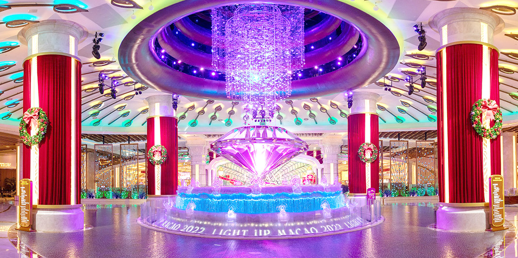 光影璀璨 點亮冬日夢幻場景;節日中的各式靈動佈置流光溢彩,澳門的新區老城齊添浪漫新裝,為旅人的冬日記憶添一層夢幻濾鏡。今年,為支持澳門特區政府旅遊局主辦,以“閃亮冬日”為主題的「2022 幻彩耀 濠江」光影活動,「澳門銀河」、澳門星際酒店及「澳門百老匯」合力打造一系列動人心弦的光影表演,照亮全城!「澳門銀河」的冬日夢幻花園亦成為城中的矚目焦點。鑽石大堂化身聖誕夢工廠,華麗的燈光閃耀在高達三米的巨型鑽石上,配合應節的音樂交織出聖誕特別版“運財銀鑽秀”,連同機敏可愛的“聖誕賓尼兔”與繁花吐豔的冬日夢幻花園,鋪設出疑幻似真的樂遊之地。水晶大堂則幻化成飄雪水晶球,特別編制的聖誕樂曲結合炫目的燈光表演,猶如將水晶大堂加上了拐杖糖,聖誕禮物,聖誕花圈等節日元素,伴隨雪花的視覺效果,引領賓客進入聖誕奇妙之旅。 「澳門百老匯」以滿天星燈飾貫穿整條美食街,將濃濃的節日氣氛從室內延申至戶外。澳門半島上的星際酒店更於佳節呈獻別緻的外牆燈光秀:圖文幻變的雙層玻璃配合大型液晶燈效,光影交疊,成為澳門新口岸區繁華勝景中的耀目地標。