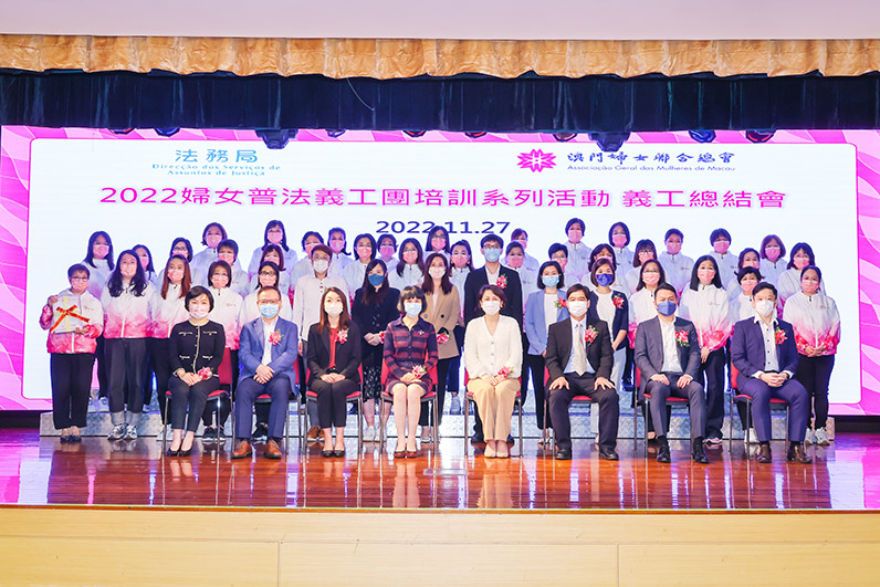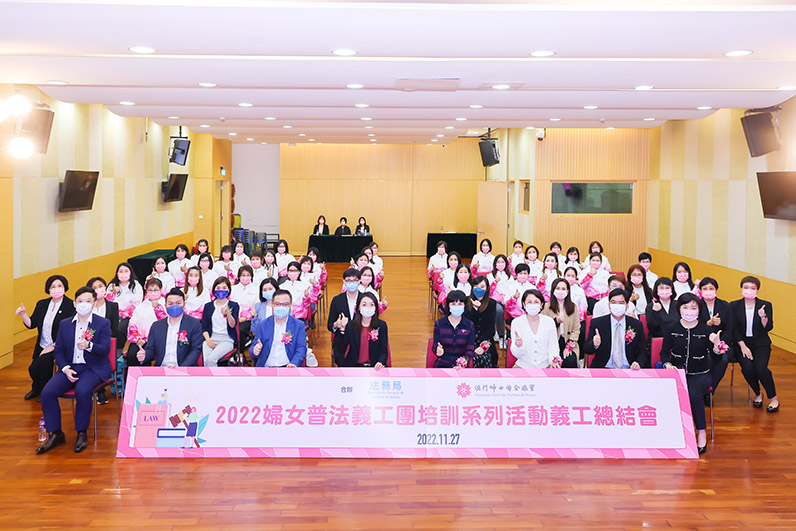 【特訊】由法務局與婦聯總會合辦的「二○二二婦女普法義工團培訓系列活動」順利完成,今年共吸引逾六十位婦女參與逾八個月的培訓課程。活動日前在婦聯綜合服務大樓五樓何賢禮堂舉行義工總結會,向四十九位結業學員頒獎嘉許,以資鼓勵。