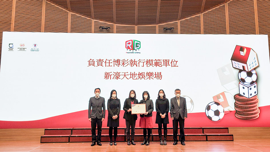 二零二一年,新濠天地、新濠影滙和澳門新濠鋒為本澳首批獲得由備受尊崇的國際第三方機構—理性博彩局頒發「RG Check」負責任博彩認證的綜合度假村。連同其在馬尼拉和塞浦路斯的物業,新濠成為全球首家旗下所有綜合度假村均獲得「RG Check」認證的綜合度假村營運商,並於負責任博彩政策、策略及文化三個標準領域中取得優於業界水平的成績,充分展現公司對負責任博彩的承諾。