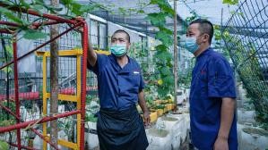 以許應寶為首的工業園食堂中國員工,從溫度、濕度、光照度以及病蟲害等角度仔細分析原因,總結經驗、吸取教訓,最終找到瞭解決辦法。於是他們重新播種栽培,悉心照料,經過一年不斷嘗試,“開心菜園”終於長出了纍纍碩果。