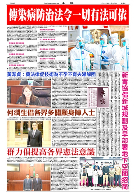 12月3日為國際殘疾人日,群力智庫理事長何潤生認為無障礙設施的覆蓋率是衡量城市是否完備的關鍵指標之一,當天既是關顧身障人士需要的特別日子,同時彰顯了澳門始終履行《殘疾人權利公約》的宗旨與義務,秉持傷健共融的根本原則,政府就持續推動無障礙共融社區的各項政策和建設,成效斐然。本澳在促進和保障所有身障人士的權益路上總是不遺餘力,與社工局等跨部門共同研擬和協調,加快無障礙設施與相關服務的落實,更為身障人士增設不少適切的配套與支援。