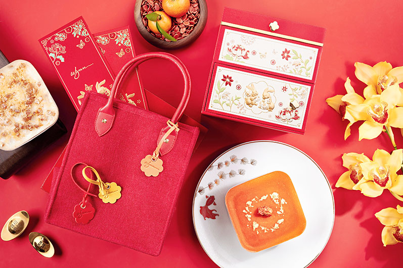 永利賀歲糕點禮盒;秉承傳統,永利將推出四款傳統賀年糕點。今年的禮盒糅合傳統與創新,融入永利一直秉持的可持續發展理念,設計出可重複使用的時尚手提袋作包裝,並採用喜慶的大紅色為主調,袋内的賀年糕點禮盒以一對玉兔、寓意富貴吉祥的牡丹花,以及永利標誌性的花卉及彩蝶圖騰作為設計主軸,傳遞玉兔迎春的祝福。
