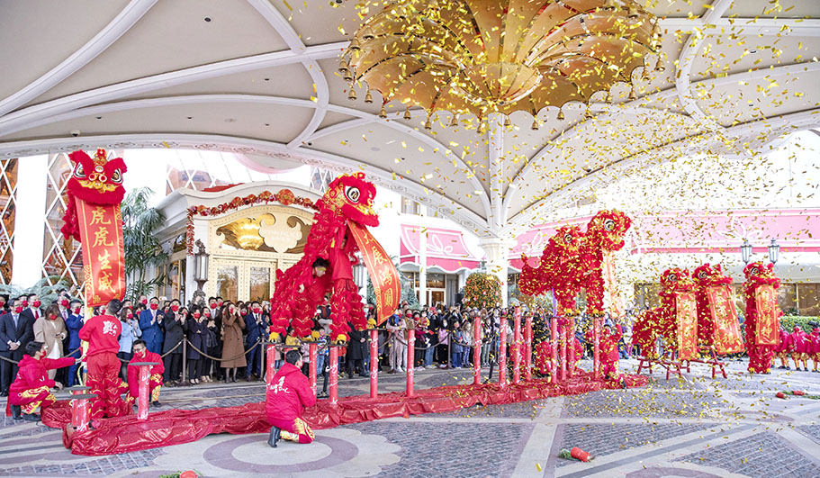 金龍醒獅表演是中國傳統喜慶節日中不能缺少的活動。永利澳門及永利皇宮將於大年初三(1月24 日)及初四(1月25日)舉行金龍醒獅獻瑞及鴻運炮竹賀新春慶典活動,朝氣蓬勃的醒獅隊伍隨著鑼鼓聲躍動起舞並鼓聲下穿梭酒店內各大熱點,表演富傳統特色的採青絕技,祝願全澳市民及旅客萬事如意、和氣吉祥、平安健康。酒店更以喜慶的賀年裝飾為傳統佳節增添節日氣氛,賓客可與親朋摯友於永利一起歡度佳節,締造難忘回憶。