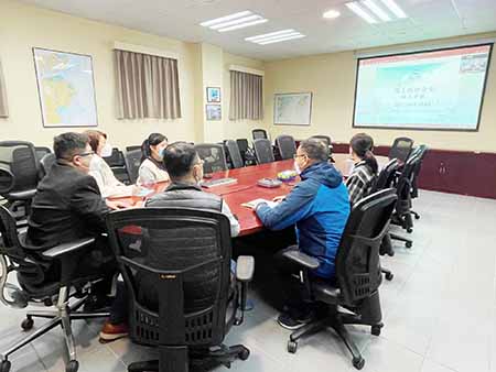海事局航行監察處處長李志炘、船舶交通管理中心職務主管麥肇全、海上巡查中心職務主管周建華及相關船檢人員等出席是次會議,向客船公司的船員介紹本澳最新的通航環境、本年1月1日生效的第3/2022號告示船舶航行應遵規則、因應不同海況和海上工程時(如第四條跨海大橋建設)客船的注意事項等,並就近年較頻繁的封航事宜和大霧天氣時的安全操作等議題進行研討,聽取船員的經驗分享和交流意見,進一步提升船公司和船員的海上航行安全意識。參與的海上客運業界包括:噴射飛航、金光飛航、粵通船務,以及其合作經營客運服務的客船公司。
