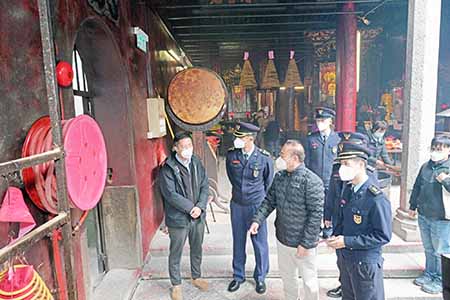 【特訊】春節將至,為保障廟宇在節日期間的消防安全,繼日前與廟宇管理者召開“廟宇消防管理工作會議”後,文化局聯同消防局一連三日(1月17至19日)排查全澳各所廟宇,重點檢查用電設備安全,並實地與管理者溝通,落實廟宇在節日期間的防火安全管理及人流應對安排。