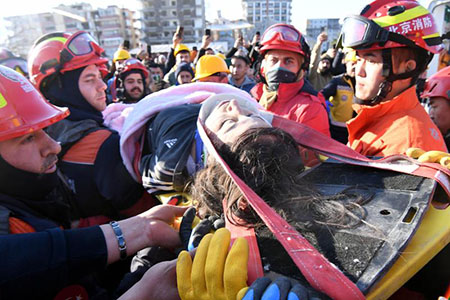 據敘利亞政府和救援機構方面消息,敘境內死亡人數已超過3500人。 當地時間9日上午,馳援的中國救援隊在營地指揮部進行搜救工作部署後,派出兩個救援小組再次趕往救援現場。16時40分左右,中國救援隊同土耳其救援隊合作,救出一名被埋在樓房廢墟下的女性倖存者。據悉,這名女性被救出時,已過災害發生後的72小時黃金救援期。