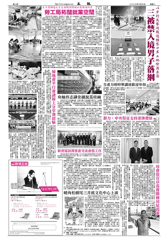 二人續指,在港澳工作方面,政府報告要求兩特區政府全面準確、堅定不移貫徹「一國兩制」方針,堅持依法治港治澳,重申落實「愛國者治港」、「愛國者治澳」的原則,並為未來發展指明方向;他們認為,中央對港澳同胞福祉高度重視,堅定支持港澳發展,讓他們倍感親切温暖,如今疫情陰霾已過,相信澳門各界定當攜手向前,穩定推進民生發展,積極用好用足粵港澳大灣區、深合區的發展態勢,主動融入國家發展大局,譜寫「一國兩制」成功實踐新篇。