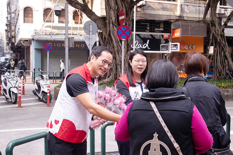 【特訊】昨日是「三‧八」婦女節,工聯議員李靜儀、梁孫旭、林倫偉和李振宇近日在本澳多個地點向女士們獻花,致以節日祝福和問候,並聽取她們對社會政策的意見。四位議員表示,女性為家庭和社會作出貢獻,冀通過佳節送花來答謝她們的付出。隨著本澳社會及經濟發展,不少女性對於就業、生育或照顧家庭的壓力增加,希望政府和社會關注她們的訴求,完善家庭友善措施及促進婦女權益的保障和發展。