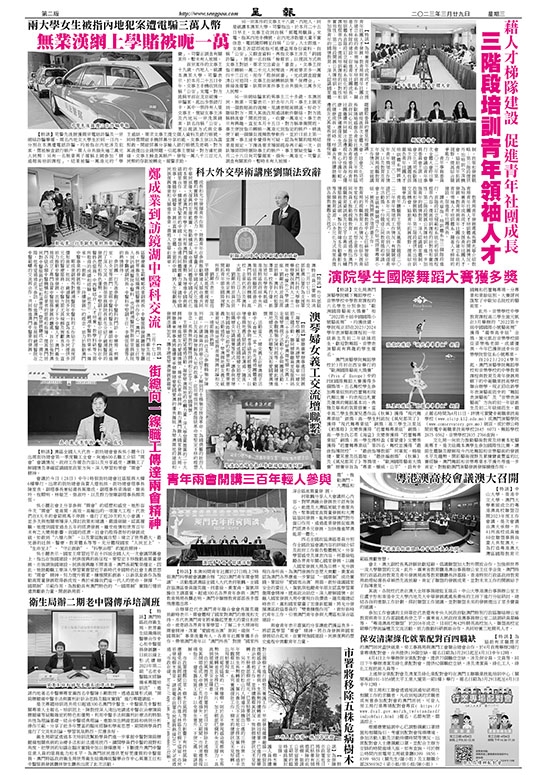 劉顯法表示,習近平總書記高度重視青年成長和充分發揮青年作用,鼓勵青年在參與推動構建人類命運共同體的實踐中展現青春活力。中共二十大擘畫了以中國式現代化推進中華民族偉大復興的宏偉藍圖,推動構建人類命運共同體是中國式現代化的本質要求。希望澳門青年學子充分利用澳門獨特優勢,為增進中國與葡語國家合作、構建更為緊密的中國—東盟命運共同體貢獻力量;講好中國故事,傳播好中國聲音,展示真實、立體、全面的中國;將人生規劃融入民族復興偉業和人類進步事業,書寫人生華彩篇章。