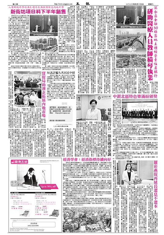 另一方面,她引述指數據顯示澳門居民存款比率持續增加,相反,貸款比率方面則錄得跌幅,反映澳門居民在消費或者投資上出現更加保守及萎縮的狀況,不利於經濟復甦。縱觀內地多個省市,政府透過刺激消費、優化營商環境等政策多管齊下推動經濟復甦;在招商引資方面,更加是主動出擊,派團到海外尋找商機。