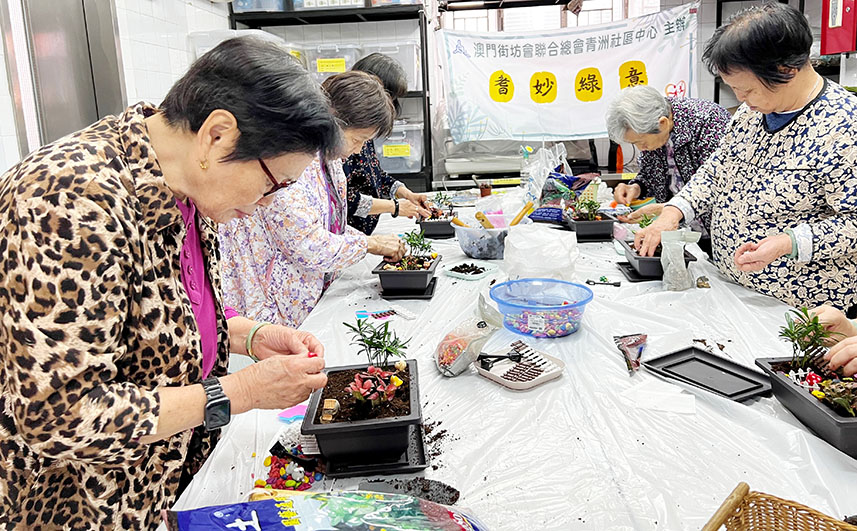 【特訊】三年疫情為市民生活帶來許多限制及突如其來的挑戰,如戴口罩、全民核酸、健康碼、抗原測試、黃碼不能搭車購物等等的不便,面對這些轉變,對一般市民而言都需時適應,對於獨居人仕更是困擾和壓力,即使現在疲情結束,當時的壓力也需要緩解,有見於此街總青洲社區中心針對退休婦女舉辦<耆妙綠意>舒壓小組,透過接觸、栽種植物和呼吸練習協助參加者調節情緒,當獨自面對壓力時亦有法可依,進行自我調適。