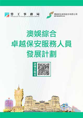 【特訊】勞工事務局表示,隨著本澳旅遊業穩步復甦,訪澳旅客人數增加,為提供優質接待服務和維護公共場所的安全,休閒娛樂綜合體對保安服務人員的需求亦隨之增加。勞工事務局和澳娛綜合度假股份有限公司合作推出“澳娛綜合卓越保安服務人員發展計劃",以“先入職、後培訓”方式,協助符合條件和有意從事保安服務的澳門居民就業,計劃由6月30日起接受申請。