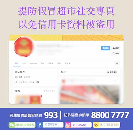 【特訊】司警局資訊罪案調查處反詐騙協調中心發現昨日有騙徒在網上社交平台開設假冒本澳某大型超級市場的專頁。