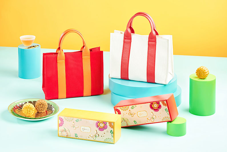 永利在月餅禮盒的設計上再次帶來新驚喜,將環保與時尚融合,把月餅禮盒變成實用性及功能性兼備的時尚單品。手提袋的外形簡單俐落,鮮艷喜慶的皮革手柄配上棉質帆布,設計時髦百搭,於節日後可作為日常時尚單品!