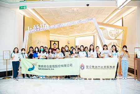【特訊】為了鼓勵不同背景的青少年提升技能,發揮所長,澳娛綜合度假股份有限公司(「澳娛綜合」)日前在澳門上葡京綜合度假村(「上葡京」)的「上藝坊」舉行職業培訓工作坊,邀請澳門聖公會星願居、聖公會北區青少年服務隊、聖公會學校輔導服務、聖公會「重新連線」隱蔽及網絡成癮青年服務計劃所服務的青少年參與,善用暑假餘暇,培養藝術興趣。