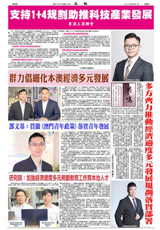 顏奕恆指出當局就四大產業設置了一系列的保障措施,如在財政、金融、法律和人力資源等保障,並制定各種配套和扶持措施,確保產業能穩中求進,發揮「1」即世界旅遊休閒中心的優勢,才能促進和聯動四大產業,推動更多項目落地,有利鞏固本澳未來的經濟結構,造就豐富多元的機遇,推動複合式人才培養。