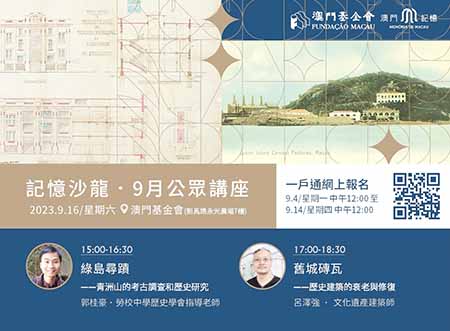 【特訊】舊城磚瓦—歷史建築的衰老與修復”及勞校中學歷史學會指導老師郭桂豪主講“綠島尋蹟—青洲山的考古調查和歷史研究”,將於9月4日中午12時開始接受報名。“記憶沙龍”校園講座自推出以來,反應熱烈,深受學校歡迎。為此,“澳門記憶”文史網四周年推13場“記憶沙龍”公眾講座,讓市民大眾報名參加,主題涵蓋澳門城市規劃、風俗文化、行業發展及公共衛生等。7、8月公眾講座開放報名後即告額滿,感謝廣大市民的踴躍支持。