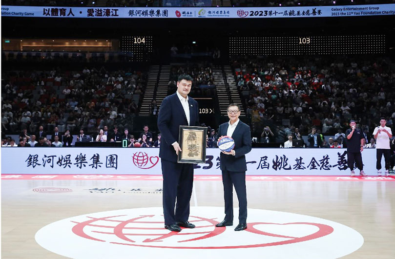 慈善賽現場,姚明為到場的亞洲百米飛人蘇炳添、中國籃球名宿朱芳雨、CBA歷史「籃板王」易建聯、中國首位「亞洲足球先生」范志毅、2022年中國籃球名人堂成員許利民、中國首位獲得奧運會長跑金牌的運動員王軍霞、北京籃球偶像級人物張雲松、史上第一位同時擁有NBA和CBA總冠軍指環的中國球員孫悅頒發致敬紀念牌匾,並向所有傳承體育精神、推動體育事業的體育人致敬。隨後,一眾體育明星更化身籃球夢想大使,與小球員現場組隊挑戰三分投籃大賽。協辦單位之一及冠名贊助商銀河娛樂集團多年來積極助力推動澳門體育事業發展,透過多元方式支持不同類型的體育品牌活動及盛事於澳門舉辦,期望透過支持是次體育公益賽事,進一步助力提升大眾對體育及公益事業的重視,並與社會各界攜手深化「旅遊+體育」跨界融合發展。
