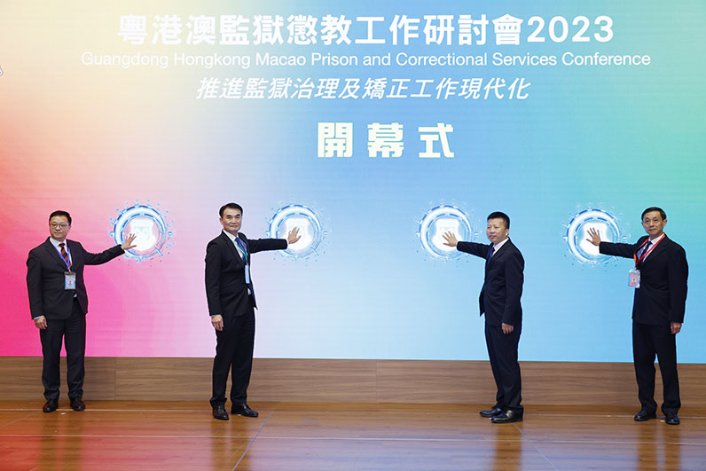澳門懲教管理局程况明局長致辭時表示,「粵港澳監獄懲教工作研討會」為粵港澳三地同業搭建一個恆常的交流及分享監獄管理專業知識和實務經驗的平台,攜手推動三地監獄懲教事務的交流與合作,達到互學互鑒、合作共贏和共同發展的目的。同時,透過體育交流活動不斷增進三地人員的友誼與聯繫。隨著社會和科技的不斷發展,以及經歷了三年疫情,均為監獄懲教工作帶來各種不同的新挑戰,而監獄的安全管理和在囚人的矯正是懲教的兩大核心工作,要做好懲教工作,完善監獄治理體系及提高治理水平,我們必須與時俱進,推進監獄治理及矯正工作現代化,使監獄懲教工作能夠高質量穩步發展。廣東代表團團長林映坤黨委委員、二級巡視員致辭時表示,研討會為三地提供相互學習借鑒與經驗分享的契機,相信通過深入交流和研討,以及分享實踐成果,必將拓展工作視野,共同推動三地監獄懲教工作的持續發展。三地雖然實際情況有所不同,但同樣面臨著監獄懲教工作的新使命,對此,期待三方的與會代表就本屆研討會相關議題進行熱烈的交流和討論,共同為推動監獄懲教工作的發展,貢獻智慧和力量。