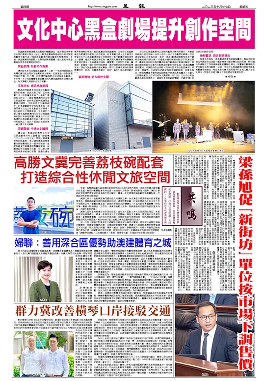 她指,近年隨著深合區體育事業快速發展,區內各類體育場館和設施不斷完善,已逐步形成以網球、單車、賽艇、馬拉松等具影響力的賽事,亦促進不少體育項目起步發展,期望當局把握深合區體育事業發展機遇,積極探索琴澳兩地具互補性、有區域特色的運動項目,同時借助深合區空間資源優勢,補充本澳土地資源緊絀、體育訓練場地不足等問題,從而更好扶助各類體育運動項目普及,整體提升本地體育運動水平。
