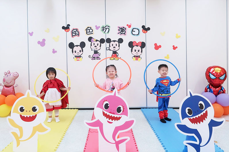 角色扮演日當天托兒所內特設多個著名童話故事的場景,幼兒們穿著各式各樣的故事人物服飾,雀躍不已,導師亦繪聲繪影演說故事,一同扮演書中角色,啟發幼兒們的想象力;幼兒和導師一起頌唱兒歌,隨著音樂節拍扭動身體,場面趣致可愛,精心打扮成不同造型的幼兒們更表演別具一格的Catwalk Show,童真盡顯;隨後更進行彩虹傘、拔蘿蔔和採蘑菇等集體遊戲,班室內氣氛愉快熱鬧,幼兒們開心滿溢,童真笑聲更如洗滌人心動人的曲韻。