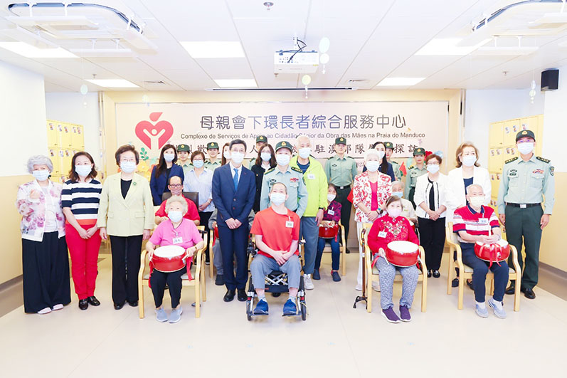 【特訊】為感謝長者對本澳社會的貢獻,傳承敬老崇孝的社會價值,中國人民解放軍駐澳門部隊政治工作部主任高好良大校與部分官兵代表,在澳門特別行政區政府社會工作局韓衛局長的陪同下,於十一月十日上午到母親會下環長者綜合服務中心慰問長者。