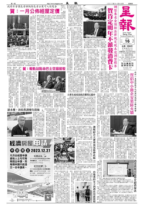 對於議員高錦輝在關注本澳高等教育方面情況,賀一誠稱,本澳高等教育受三年疫情影響令國際學生減少,但今年已恢復至二零一九年的基本點。賀一誠指出,本澳自二零一八年起與一帶一路沿線國家的教育機構或學校簽署協議,希望當地學生來澳升讀高等教育,過去已組織二十三次活動,受疫情影響停止,現時已恢復,至今有逾一千二百名一帶一路沿線國家來澳升學,由於並非所有一帶一路的國家均屬富裕,因此各間大學有推出包括獎學金支持當地學生來澳升學。