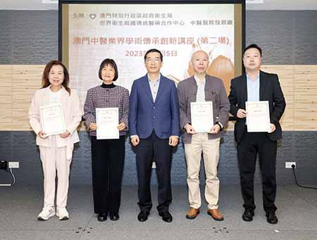 現時為止,衛生局共舉辦了兩場 “澳門中醫業界學術傳承創新系列講座”,日後將會繼續邀請本地老、中、青年的中醫進行多層次、多專科的學術交流。衛生局期望透過本澳中醫業界講座傳承本地中醫藥的智慧和技術,使得本澳特有的傳統中醫藥特色得以保留及延續,共同發揮本地中醫藥的特色,推動本澳中醫事業的傳承與發展。