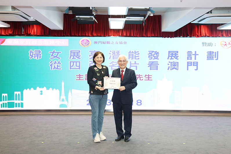 在文化方面,中心邀請本澳資深傳媒工作者李業飛,為婦女介紹澳門的四張金牌名片,從澳門文化遺產、美食名片、漢文文書及功德林文獻等申遺成功,藉此宣揚在國家的支持下,澳門的迅速發展、獨特魅力與潛力。在家庭及兒童方面,組織親子家庭參與粵港澳大灣區交流活動,從而更深入了解國家的成就和發展情況,讓下一代從小建立愛國愛澳的觀念。此外,關注長者群體,透過舉行慶祝國慶及回歸的社區敬老演唱會,讓長者透過歌聲感受普天同慶的社區節慶氛圍,並藉著文藝康樂活動表達對長者群體的關懷。