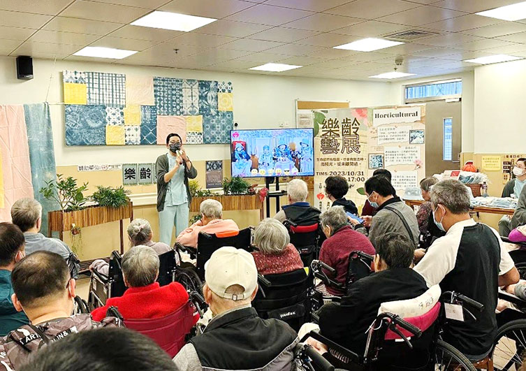「園」滿人生-樂齡藝展品會,是院友通力合作下以一系列園藝為主題的展品會,透過對植物特性的認知與學習,加以悉心照料,見證植物茁壯成長的過程,同時以植物的形態去創作盆景,活生生的綠色植物盆景,如畫般優美呈現眼前,是次展品除盆景及多肉盆栽組合外,亦有以植物染料的扎染衣物、百家布、乾花香蠟片及創意滴膠等,其手工的精緻,構圖之美觀,叫參觀者讚嘆不已,充分體現了院友們寶刀不老,無惧新事物的衝擊,積極參與、學習及團體合作精神,更從中獲得成功與滿足感,內心得以療癒。