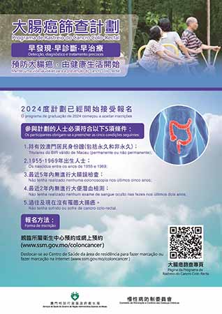 可於1月22日起登入大腸癌篩查專頁(www.ssm.gov.mo/coloncancer)進行網上預約及了解更多大腸癌及篩查計劃資訊,亦可親臨所屬衛生中心預約諮詢服務。