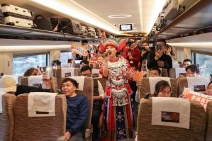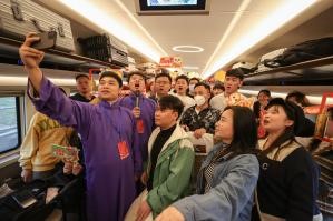 “青春遇見貴州·溫暖回家路”——2024“茅台王子·春暉號”免費春運直通車活動2日啟動,910名貴州在廣東務工人員乘坐G2946次免費春運直通車從廣州南站出發,返回家鄉貴州過年。