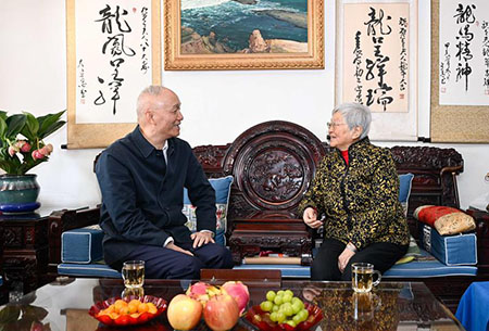 蔡奇首先來到中國社會科學院原副院長、經濟學家劉國光家中,親切詢問這位百歲高齡的老人身體和生活情況,對他退休後依舊堅持從事研究工作、培養提攜青年人才表示感謝,聽取他對做好哲學社會科學工作的建議。隨後,蔡奇來到中央廣播電視總台原央廣播音指導、節目主持人徐乃文家中,對她長期以來為中國廣播事業和兩岸文化交流作出的貢獻表示肯定,聽取她關於加強黨的新聞輿論工作的建議。在中國科學院院士、放射化學專家王方定家中,蔡奇充分肯定他長期致力於基礎研究、為中國核工業發展壯大所作出的貢獻,王方定對核工業技術骨幹人才培養提出建議。在看望中國工程院院士、空間技術專家戚發軔時,蔡奇肯定他在中國空間事業發展中發揮的作用,對他為中國航天事業和載人航天工程建言獻策、培養工程技術領軍人物表示敬意,並就建設航天強國、培養高水平創新人才聽取他的建議。