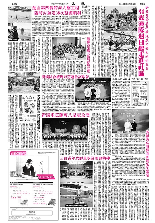 為與饗客同慶「蜀道」獲評為米芝蓮一星餐廳,特別推出《米芝蓮星饌套餐》,囊括一系列特色手工招牌菜色,詮釋經典川菜珍味。歡迎親臨美高梅品嚐殿堂級的餐飲體驗,如欲查詢及訂座,請致電(853)8802 3888 或瀏覽www.mgm.mo。
