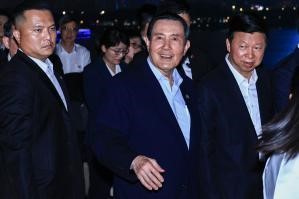 馬英九率領“大九學堂”20名青年學子於4月1日搭乘中國南方航空班機,於下午兩時半左右抵達深圳機場。艙門打開,馬英九面帶微笑地走下舷梯後,機場工作人員向其送上鮮花,馬英九與其握手致謝。