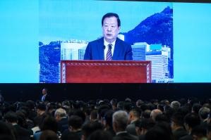夏寶龍最後表示,有偉大祖國做堅強後盾,有全體港人的努力打拼,香港由治及興未來可期、前景廣闊,新時代列車“香港號”的車輪一定會滾滾向前、不可阻擋。