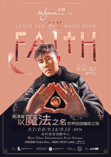 是次最新巡演以「MY FAITH」為主題,澳門為首站演出。對潛心鑽研魔術技藝多年的 Louis 來說,魔術早已成為他的人生信仰,引領他走遍世界各地,成就一個又一個奇跡,讓觀眾在轉 瞬頃刻間體驗幕幕魔幻與驚奇。這次他將一如既往施展渾身解數,連續兩星期於永利皇宮再現 魔法奇蹟,為觀眾送上新一番的奇妙體驗。