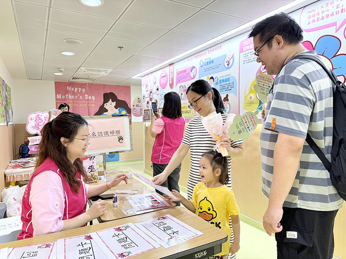 活動當天,中心內特別設置母親節影相打卡區、攤位遊戲以及幸運大抽獎等豐富多彩的環節,其中,影相打卡區成為親子家庭合影留念的熱門地點,許多家庭在此拍下充滿愛意的瞬間,留下珍貴的回憶,共同享受著親子互動的美好時光。活動現場還特別為每一位到場的媽媽準備美麗的康乃馨花束,以此表達對偉大母親由衷的感謝之情。