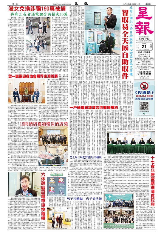 【特訊】“澳門環保酒店奬"頒獎典禮昨(20日)在環境保護局演講廳舉行,向15間獲“2023年澳門環保酒店獎”的酒店頒發獎項,表揚業界為澳門環保工作的貢獻。