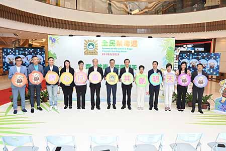 【特訊】為進一步向社區宣傳防罪資訊,提高公眾對涉毒犯罪的警覺意識和防範能力,以及響應六月廿六日國際禁毒日,司法警察局於六月下旬舉辦「全民禁毒週」,活動以「齊心抗毒,共創明天」為口號,透過設置禁毒資訊展板、毒品樣本展示、遊戲攤位及禁毒問答等活動,向大眾宣傳識毒、防毒、拒毒的訊息,弘揚「全城禁毒」良好風尚。「全民禁毒週」活動於六月廿二日至廿八日期間在氹仔星皓廣場舉行。啟動儀式於活動首日上午進行,邀得廣東省禁毒辦副主任及廣東省公安廳禁毒局政委鄭志強、「司法警察局大廈防罪之友」總召集人及澳門物業管理業商會永遠會長劉藝良、澳門街坊會聯合總會會長吳小麗、澳門婦女聯合總會會長劉金玲、澳門工會聯合總會副理事長李靜儀、民眾建澳聯盟理事長李良汪、澳門歸僑總會副會長趙文炎、澳門不動產管理專業技術人員協會會長仇坤儀、澳門物業管理專業人員協會副會長戴偉雄、中華教育會副理事長楊佩欣及星皓廣場總經理李恩廣等嘉賓,聯同司警局局長薛仲明主禮。司警局副局長賴文威、蘇兆強及岑錦榮,以及多名主管人員出席。