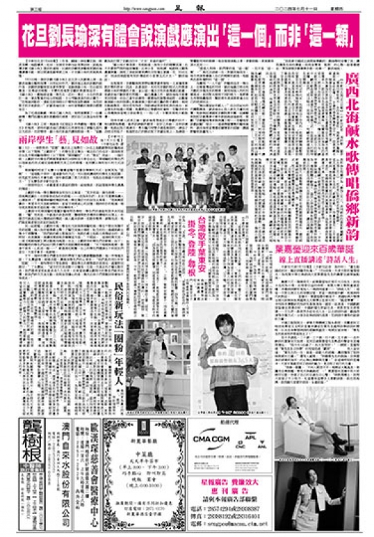 “台灣人家家拜公媽(指祖先的神主牌位),神主牌位上書‘詔安’二字,我有點懷疑先祖是不是從福建漳州詔安遷移到台灣的。”初見端倪,葉東安此行廈門頗為興奮,但受限於演出行程安排,未能前往詔安尋根。