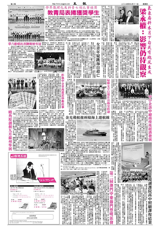 【特訊】澳門鏡湖護理學院與中葡職業技術學校合辦的高中健康照顧課程結業典禮於二O二四年七月八日在澳門鏡湖護理學院生命體驗館舉行結業禮,十位高三學生順利畢業。