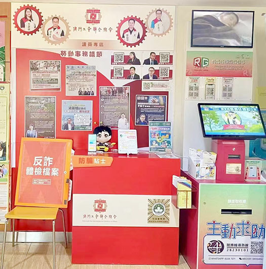 【特訊】為提高防罪及防詐騙意識,工聯職工書屋聯同司法警察局在館內開設「反詐專家體驗館」,通過趣味裝置及互動模式,給參觀者沉浸式體驗受騙模擬的過程,希望透個體驗後都能成為反詐專家。項目自2023年12月啟動至今,已有共逾2800多位市民大眾參觀。為了進一步提高居民預防電話及網絡詐騙的意識,司法警察局與工聯總會持續合作,日前先後於工聯台山社區中心、工聯筷子基家庭及社區服務中心,以及“澳門書市嘉年華”內的工聯展位,向公眾展示「反詐專家體驗館」,並透過模擬騙案的手機互動體驗,讓居民了解反詐資訊,提高居民的防罪意識。