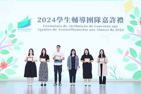 【特訊】教育及青年發展局於七月十七日在高美士中葡中學舉辦「二○二四學生輔導團隊嘉許禮」,向服務滿一定年期的學生輔導團隊成員頒發服務獎項,表揚其多年來堅守崗位和熱心服務,共吸引來自九間學生輔導機構的負責人及輔導同工約三百人出席。教青局副局長阮佩賢在嘉許禮上肯定學生輔導團隊為全澳學生所作出的貢獻及努力,尤其當學生發生緊急情況時能即時以專業的知識和經驗支援學生及家長,她又勉勵學生輔導團隊繼往開來發揮專業精神,與澳門社會共同為學生做好「健康守門員」。