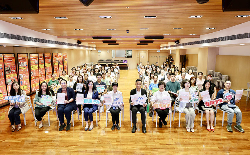 講解會昨日下午兩時半在工聯大廈二樓禮堂舉行,衛生局局長羅奕龍、疾病預防及控制中心主任梁亦好、疾病預防及控制中心專科培訓實習醫生殷淇淇、衛生局健康促進處高級技術員蕭巧玉、關澤霖,技術員李荔鋒、一級護士古惠卿,以及工聯總會會長何雪卿、會務顧問梁玉華、副理事長趙蘭瑛、梁銘恩,工人醫療服務總監區子揚、工人醫療所主任許旋珊等負責人,以及約百名職工及會員出席活動。