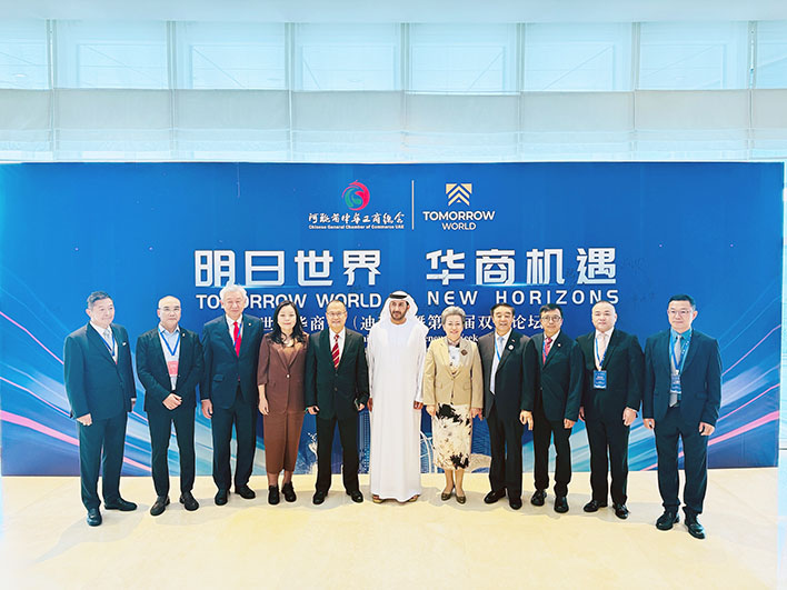 【特訊】全國政協委員、澳門中華總商會理事長馬志毅率領代表團一行四人,於十一月十三日至十六日赴迪拜參加由阿聯酋中華工商總會主辦的「世界華商周(迪拜)暨第二屆雙灣論壇」,活動以「明日世界 華商機遇」為主題,來自世界各地二十九個國家和地區的華商逾六百人參加。